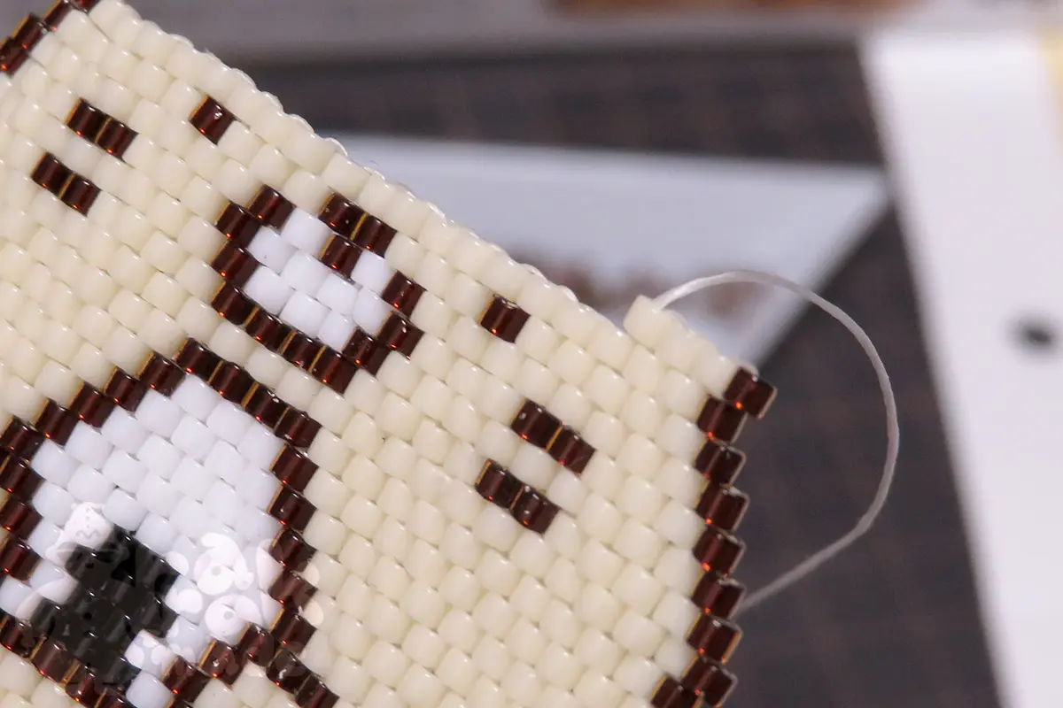 ビーズをつなげていく糸は、緩む事はなく、作業を中断してほったらかしておいても、最後のビーズがゆるゆるになって、どこかに行ってしまうとかいう事はないです。さっと放置して大丈夫なのは、地味にありがたい。