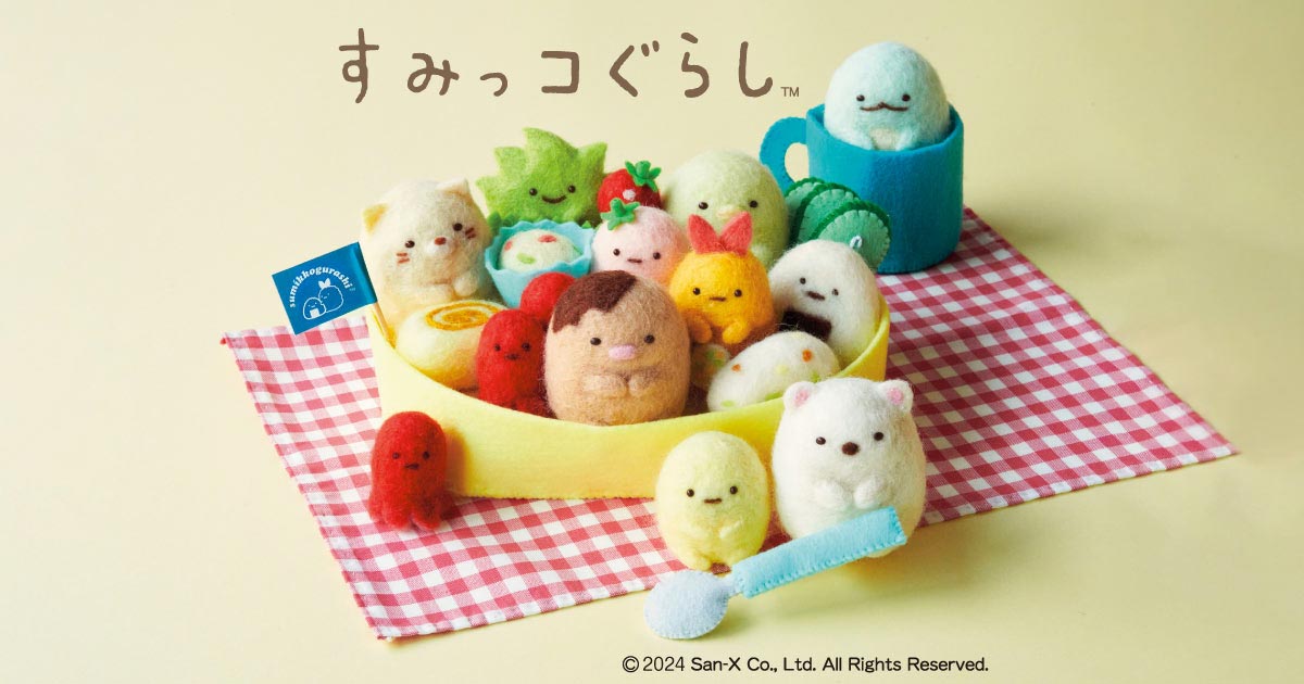 このキットは、5センチ四方くらいのぺたんこなすみっコが出来上がるキット。付属のボールチェーンでぶらさげてもよし、どこかに貼り付けるとかでもよしの、使い道はそれぞれにおまかせ!のかわいいすみっコが作れます。