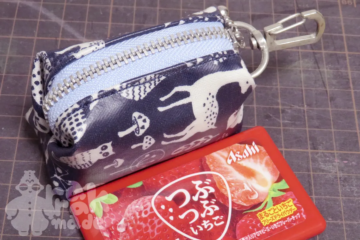 キャラメルポーチのサイズの計算方法というかサイズの出し方については、ひとつ前の記事をご覧ください。また、今回のポーチとファスナーの付け方も違うので参考になれば、と思います。
