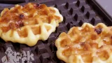 丸めた生地にさらにワッフルシュガーを乗せてプレス。1枚目はまだワッフルトースターが完全には熱々にはなっていないので片面2分位焼きましたが、さすが強めの弱め中火。2枚目以降は1枚目より早く焼けます。