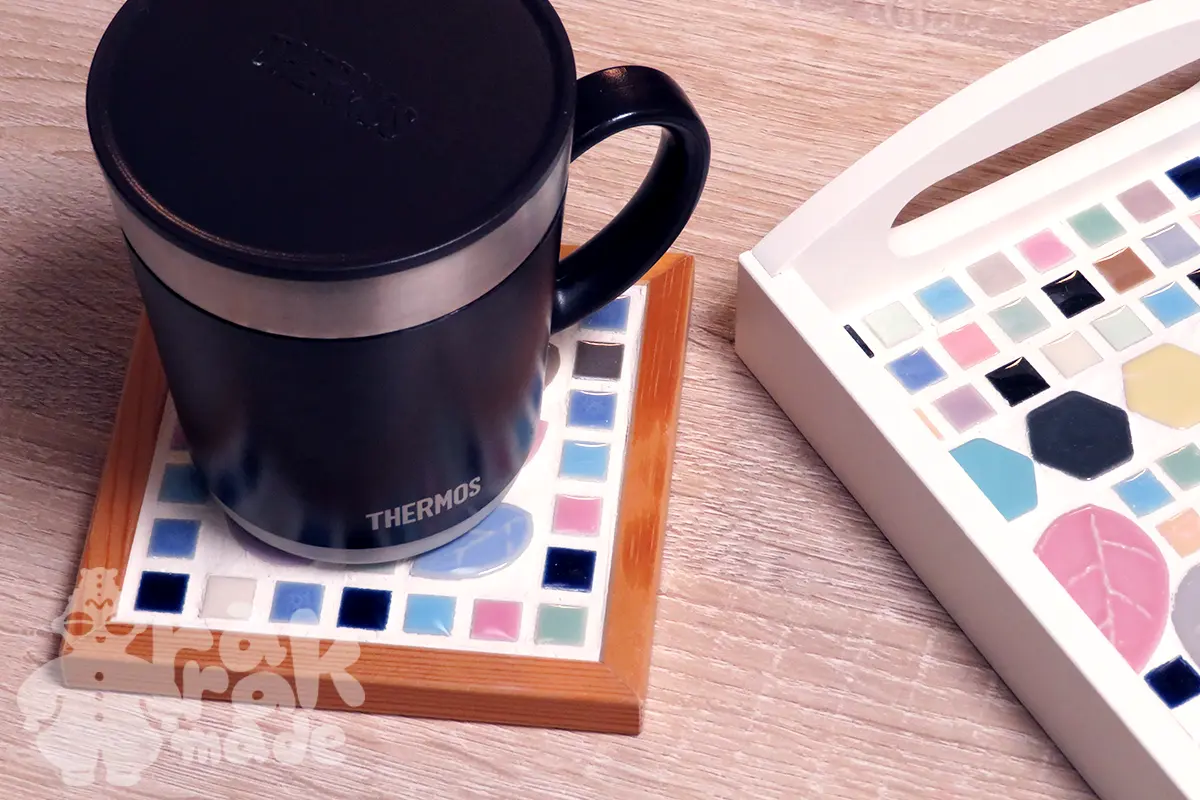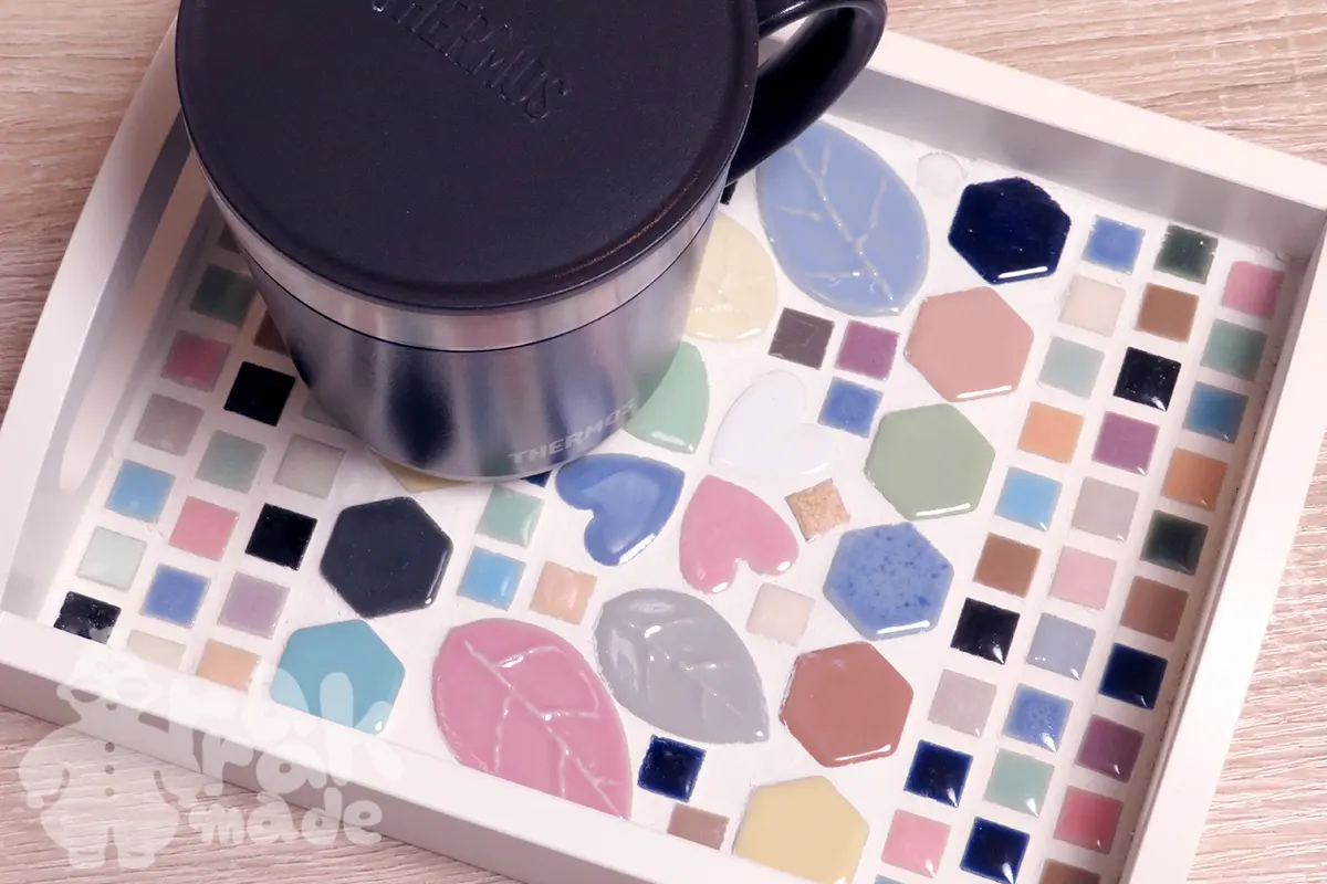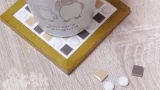 フェリシモのキットの使い残りの目地材を使い切る企画。かわいいタイルを買ってコースターとお盆を夫メインで作りました。
