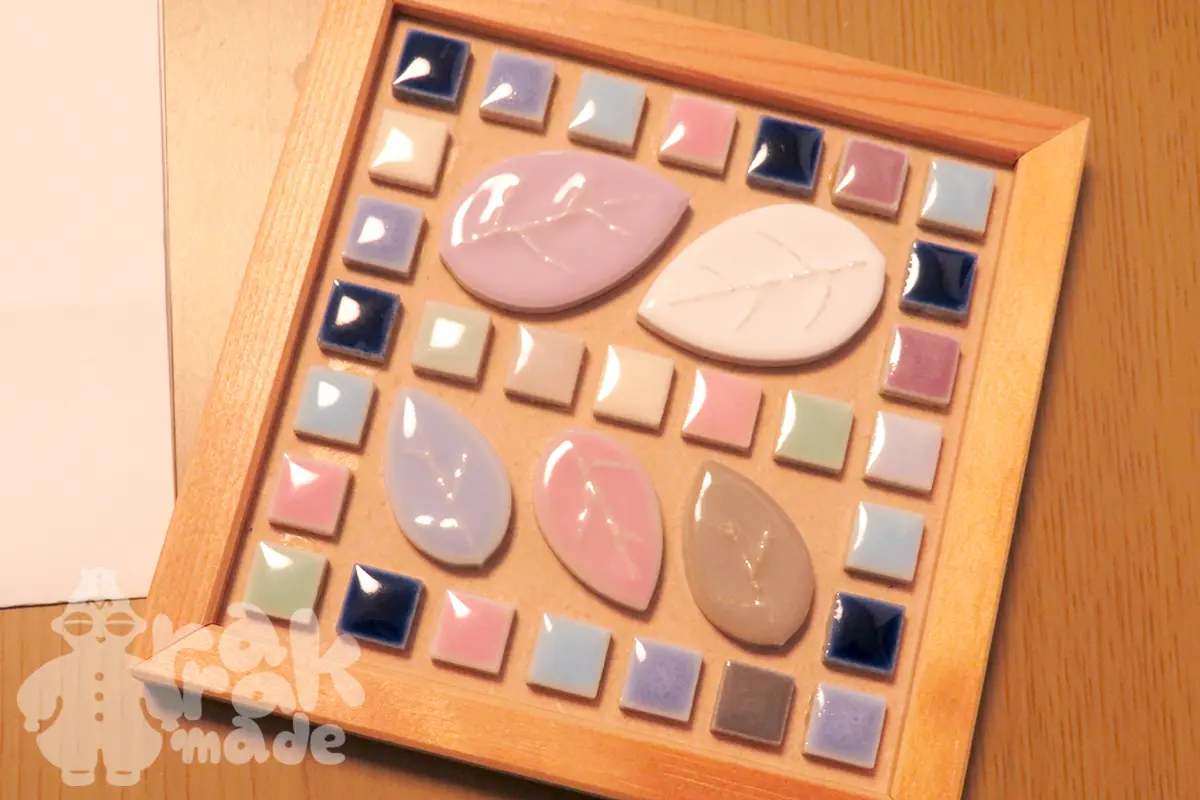 タイルクラフトは、タイルを木工用ボンドで貼って、タイルとタイルの隙間を目地材で埋めていく工作。タイル自体がかわいいので、目地剤なしとか、紙粘土とかを使っての作品制作もあるようで、やってみたい。
